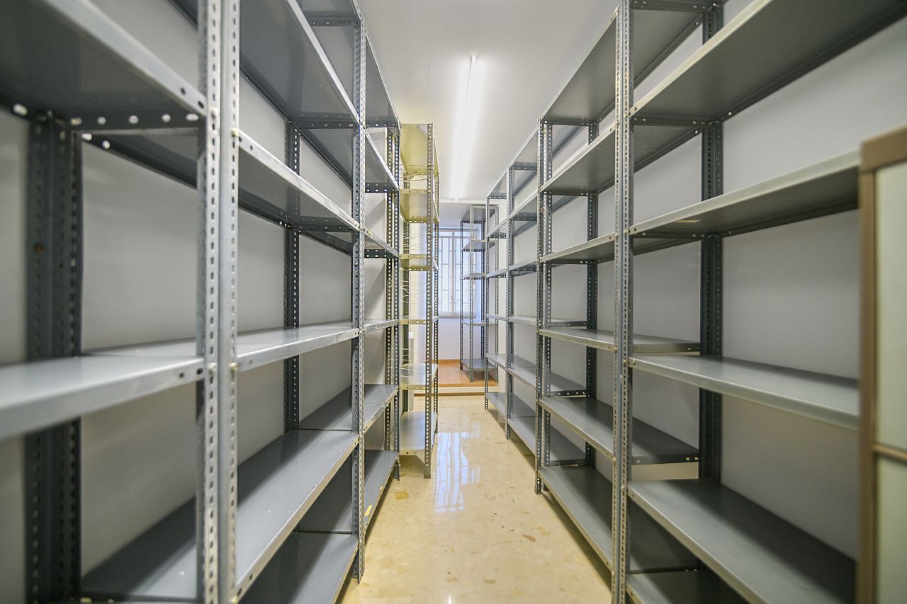 A la sala d’actes, s’ha reduït l’espai original per crear, dins del mateix àmbit, un punt de treball destinat a reunions privades, així com un magatzem d’arxiu, integrant totes aquestes funcions en l’espai preexistent.
